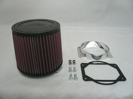 The ETS Air Filter Kit is a great way to economically replace the stock air box with an open element filter to maximize air flow. Our kit features a genuine K&N air filter and a contoured 4.5" filter inlet velocity stack adapter for smooth flow into the factory MAF. These pieces will bolt directly in place of the factory airbox for a quick and painless installation.
