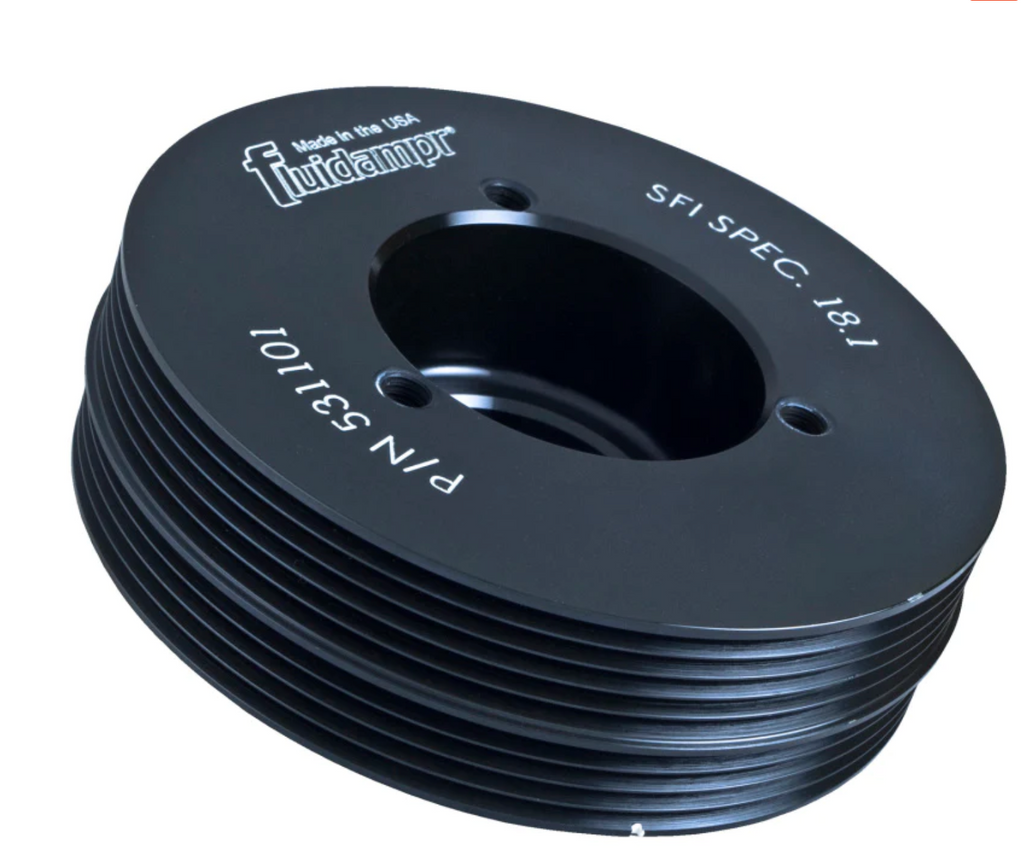 Protect your engine. Modifications can compromise your stock harmonic balancer. Install a Fluidampr performance damper early for best durability. Superior viscous damper design controls harmful torsional vibration across the entire rpm range. Reduce wear on engine components. Reduce risk of crankshaft failure. Improve timing. Unleash lost torque and horsepower. Precision CNC machined and balanced high-grade steel components. Corrosion resistant black zinc finish with engraved timing marks. No maintenance required. Trusted by leading engine builders worldwide. SFI 18.1 certified. Made in USA.