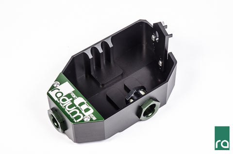 The Radium Engineering fuel pump hanger permits the use of one or two AEM 50-1220 E85 high-flow fuel pumps.