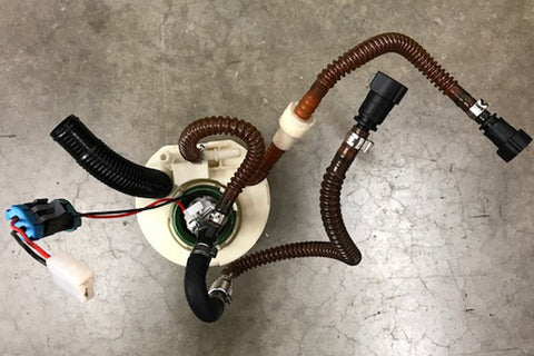 If an install kit with a fuel pump is purchased, a filter sock is included along with all necessary electrical components to make the kit plug and play, as shown below.
