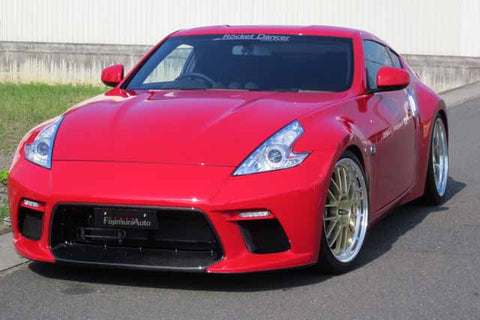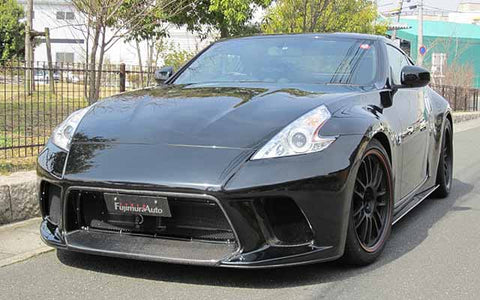This front bumper spoiler, composed of carbon, is designed and manufactured by Fujimura Auto. This product is part of the Rocket Dancer kit, created specifically for the Nissan Z34 370Z. If interested, please conctact us at Bulletproof Automotive for more information regarding pricing, fitment, shipping costs, as well as installation recommendations.v