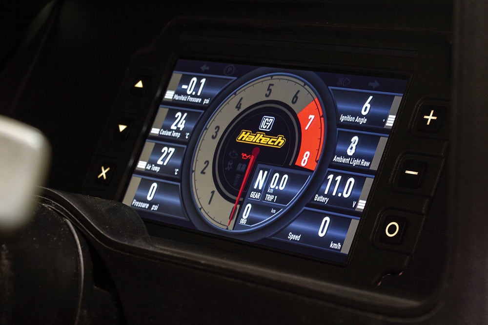 With a crisp, clear and full colour display, the all new Haltech iC-7 Display Dash lets you see things in a brand new way. Designed and manufactured in Australia with motoring enthusiasts in mind, the iC-7 offers market-leading features in a unique, state-of-the-art package. Featuring auto-dimming ambient light reactive brightness, user-programmable multi-colour shift light bar, the iC-7 connects directly to all current Haltech ECUs via a CAN network.