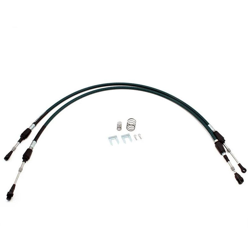 The Hybrid Racing cables are a performance upgrade replacement for stock OEM cables. The solid rod ends, 30% thicker cable core and spherical bearings give the Hybrid Racing cables a firmer, tighter feel over OEM cables resulting in fewer missed shifts and a more connected feel to the chassis.