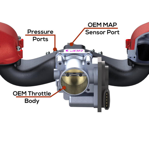 There are ample connections to the intake manifold for all the OEM boost reference and vacuum ports plus room for expansion. When adding secondary fuel systems or extra gauges the added NPT ports and included barbed fittings will make everything look like it was designed to be that way.