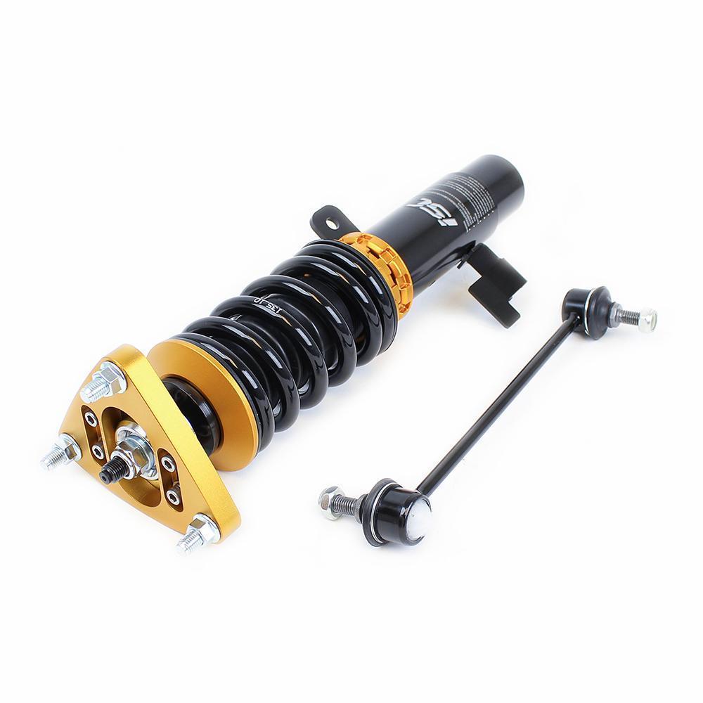 ISC N1 coilover systems offer: 32-way adjustable rebound damping, full height adjustability, single cylinder monotube piston rod design, rubber or pillow ball upper mounts, front camber plates (on most models), and all the needed tools to adjust your ride height and stance. Plus, the kits offer multiple valving options—including Street Comfort, Street Sport, and Track Race.