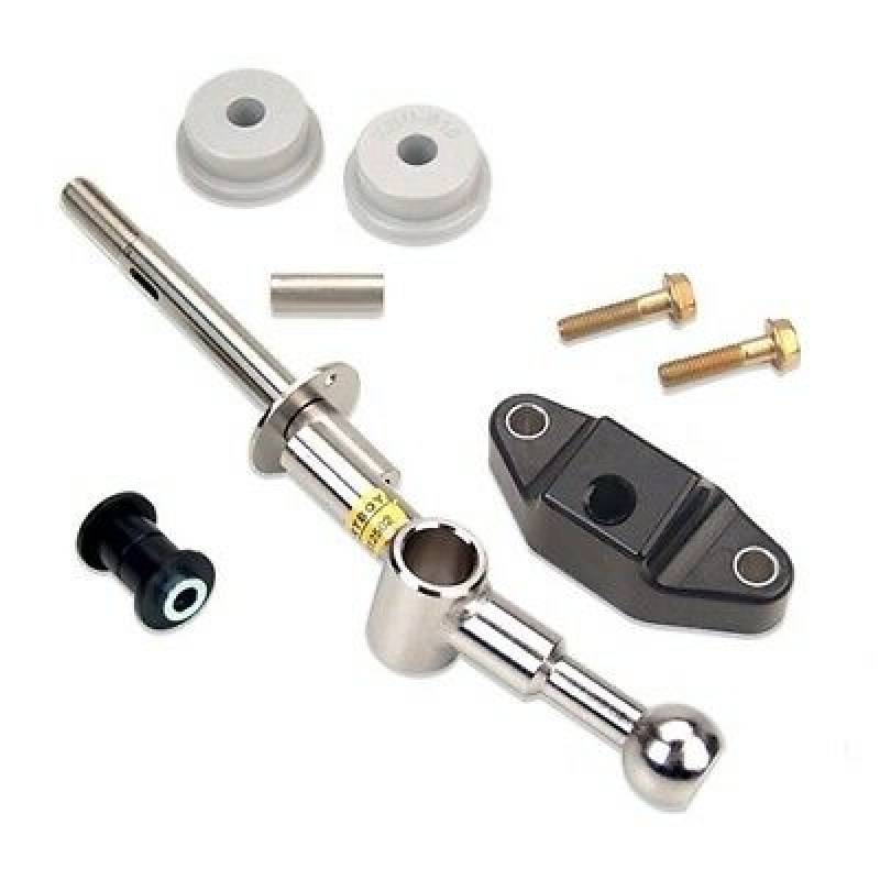 Included is the short throw shifter kit which will decrease the shift throw by 40%, and also included are the rest of the shifter bushings needed to complete the job. This installation can be performed with proper lifting of the vehicle, and typical hand tools. Save a little money by ordering as a kit rather than ordering the parts individually.