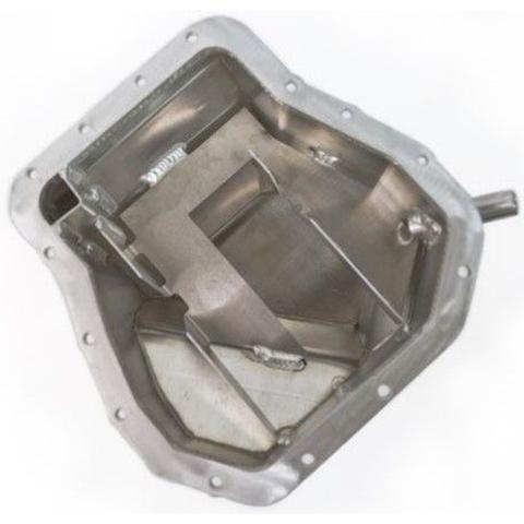 This Oil Pan holds 6 quarts of oil, up to a 40% increase in capacity over OEM, and was designed to work with our Ultimate Oil Pickup (OEM ones are known to break), but can be modified to work with the OEM pickup.