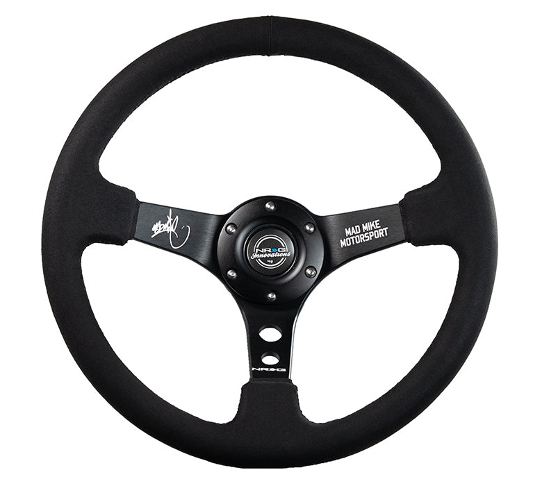 Mad Mike Inspired 3 spoke steering wheel with solid spokes on two and special circle cut out on the center spoke. Reinforced with 5mm thick spokes.