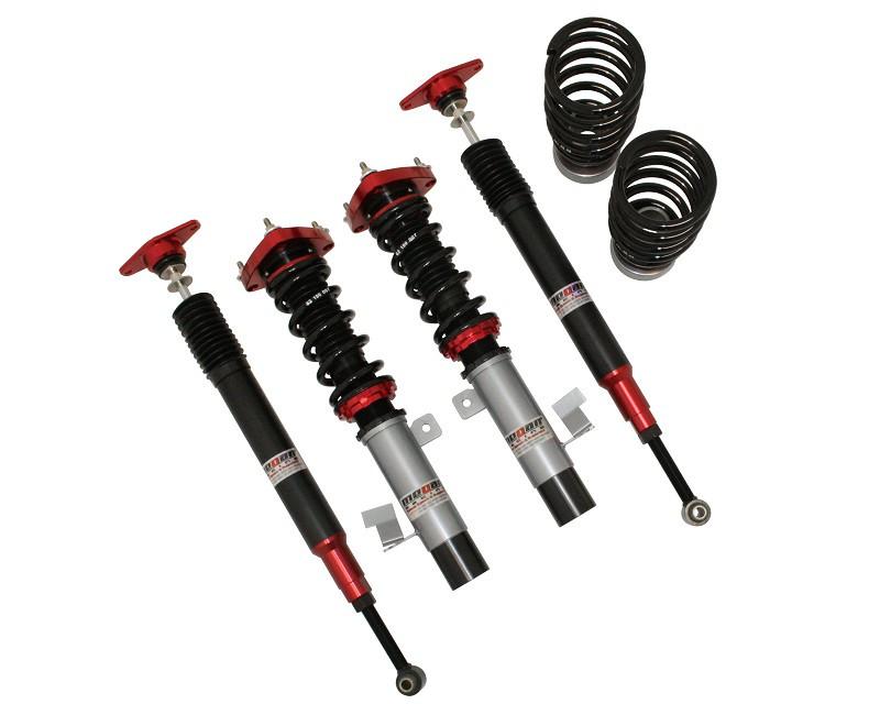 Megan Racing Coil-Over Dampers are the ultimate upgrade to your track or street car. Featuring 32 levels of damper force adjustment, separate spring perch height and shock length adjustment allowing you to retain full suspension stroke and to fine tune your suspension characteristics. These damper kits are then perfectly matched with front and rear Pillow Ball upper mounts, including camber plates integrated with the upper Pillow Ball mounts on strut-type suspension applications.Compression and rebound settings are easily adjusted through a single damper adjustment knob which is built-in at the top of the damper mount for easy access. Adjustments are simple to tune according to your style of driving and desired comfort level whether you are a professional certified mechanic or an automotive enthusiast with amateur mechanical skills. All of our dampers are capable of handling a +2kg/mm or -2kg/mm change in spring rates to further tune your suspension to your desired handling characteristics.Height adjustments are made with separate CNC-Machined locking spring perches for accuracy and smooth adjustment with separate damper shock length adjustment to retain full-stroke and allows for precision suspension tuning. The wide range of allowable ride-height adjustment allows you to retain the factory ride-height for OEM appearance with performance handling, drop your car all the way down for an aggressive stance, or fine tune your suspension for the race-track to lowering your center of gravity to gain full potential of your vehicle's handling capabilities.On applications utilizing strut-type suspension designs, the Megan Racing Damper Kits come with fully adjustable Pillow-Ball upper mount camber plates to easily tune and adjust your camber, giving you a competitive edge over other suspension setups. This allows you to tune your car for any ride height and still adjust camber to improve handling, vehicle predictability and tire wear, which is a great benefit both on the race-track and on the street.The quality and durability of the Megan Racing Damper kits are unmatched. Made of extremely durable Steel and featuring springs that are constructed of SAE-9254 Cold-Wound Steel which are then tested over 500,000 times by compression inspection. With deformation less than 5% and high strength sophisticated surface coating, we stand by our product with our strong warranty.SPECIFICATIONS & FEATURES:APPLICATION:Mazda 3 2003-20009Mazdaspeed 3 2007-2009SPRING RATES:F: 62mm ID; 180mm length; 7 kg/mmR: 62mm ID; 195mm length; 4 kg/mmDAMPER SPECS:F: 110mm stroke; 230mm length; M2 valving codeR: 130mm stroke; 250mm length; A12 valving code- 32 Levels of Adjustable Damper- Pillow Ball Upper Mounts- Rubber Dust Boots- Adjustable Ride Height- Aggressive Spring Rates- Single-Cylinder Design- Aluminum Brackets32 Levels of Adjustment:1-8: Suggested for track use.9-16: Suggested for mountain/aggressive use.17-32: Suggested for common street use.- All coil-over damper kits come with 1 year manufacturer-defect warranty.- All Hardware is Included
