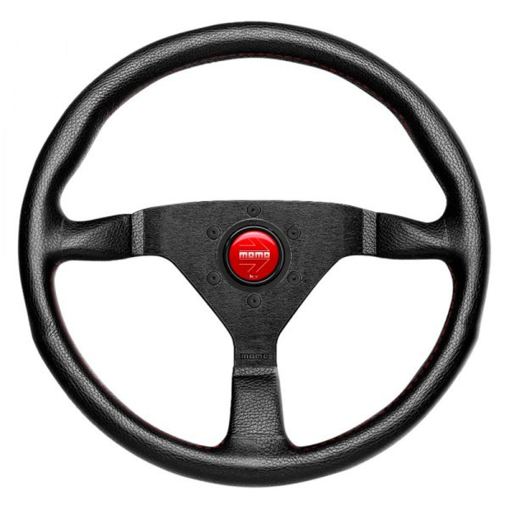 MOMO 3-Spoke Monte Carlo Series Black Leather Steering Wheel with Red Stitch