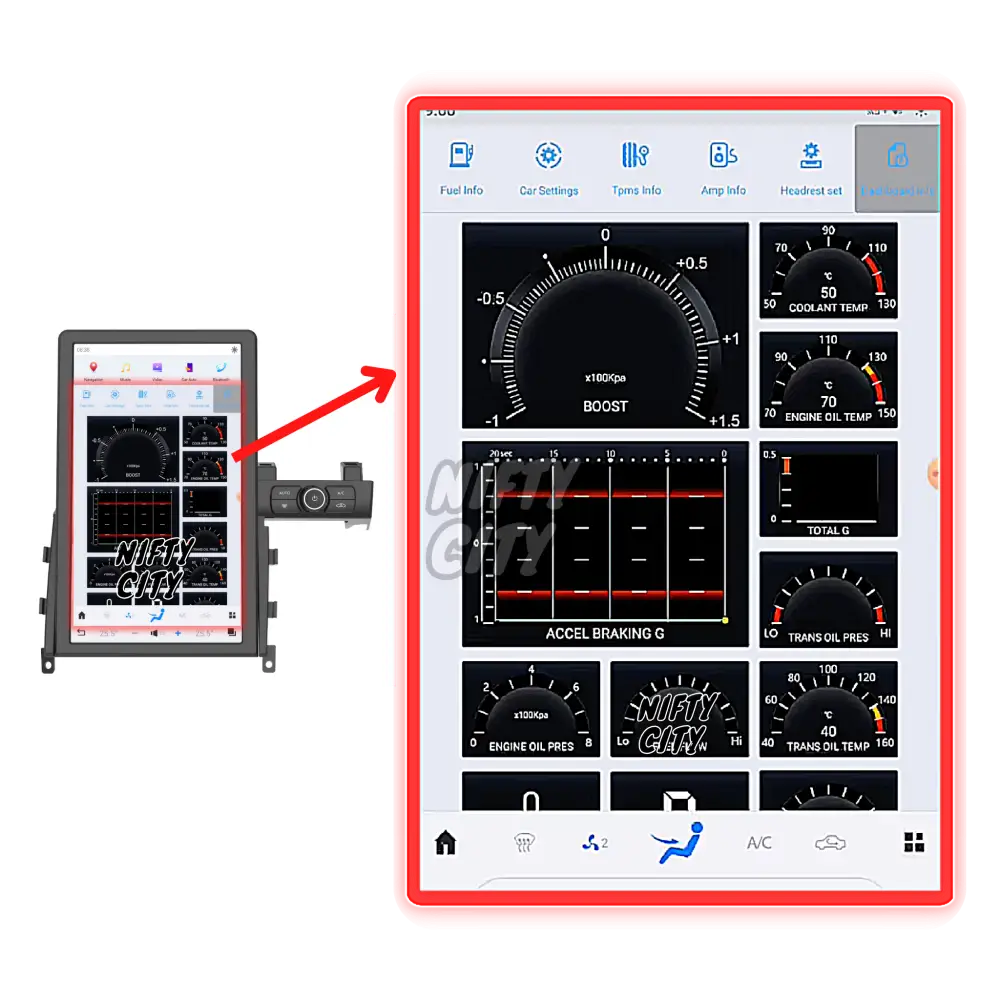 > Retain factory Digital Gauges and available inside Nifty City Tesla-Style unit.