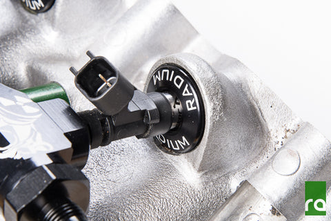 Thoroughly clean out any dirt or debris found in the intake manifold injector seat bores. Next, lubricate the Radium injector seat O-rings with engine oil. Press the Radium injector seats down firmly into the intake manifold injector ports until fully seated. If necessary, use a small rubber mallet.