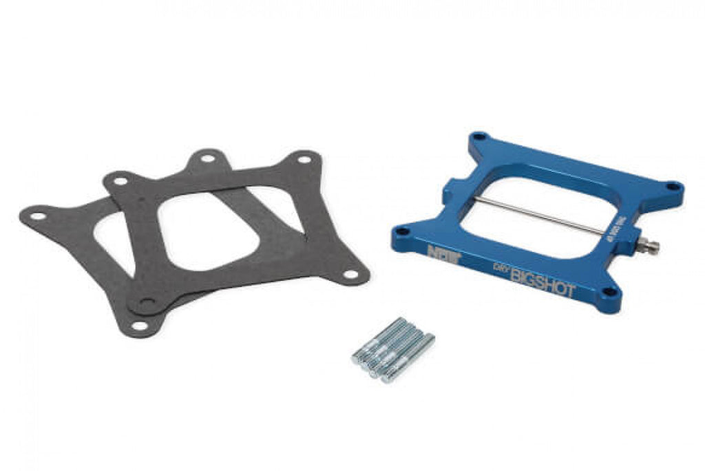 NOS Big Shot Injector Plate, dual dominators, with jets and plumbing, Holley dominator, V8 will assure a steady, precise metered flow of nitrous and fuel for reliability. Backed with years of laboratory research, as well as dyno and drag strip testing. NOS injector plates are available for those who want to build their own system or upgrade their current nitrous system without having to go through the expense of a new complete system. Unless specified, NOS injector plates incorporate a low profile ,1/2 inch thick, design and are constructed of solid billet or die cast aluminum with a durable black finish. Included are all applicable gaskets, studs, jets and plumbing.