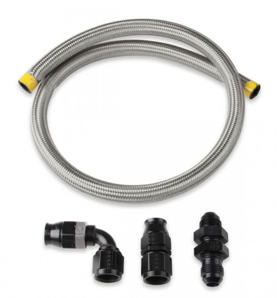 NOS NOS introduces nitrous blowdown hose kits. These hose kits are available with 90 or 180 degree bottle fittings and straight or 90 degree exit fitting offering you many fitment choices. Also included is a 36 inch length of stainless steel braided Speed-Seal hose and a choice of black Speed-Flex fittings. This type of hose kit is necessary when mounting a nitrous bottle inside the passenger compartment trunk of a vehicle. It directs the nitrous outside of the vehicle in the case of an over-pressurization event.