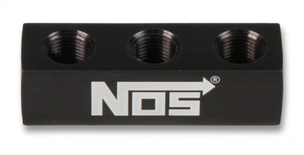 NOS NOS Distribution Blocks are precision machined to help distribute balanced amounts of nitrous and fuel to each intake port. All NOS Distribution Blocks use 1/8 inch NPT in and are available with 1/8 inch NPT or 1/16 inch NPT out. Fittings must be ordered separately.