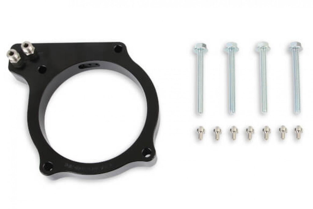 NOS The NOS "Plate Only" kit allows our customers to build a custom nitrous system for their 6.2L Gen III Hemi powered muscle car with a 94mm throttle body. This slim design is only 3/4" thick at the throttle body mounting flange. This allows maximum room forward of the throttle body to clear accessory drives, tensioner brackets or other obstacles that may interfere with a more forward mounted throttle body.