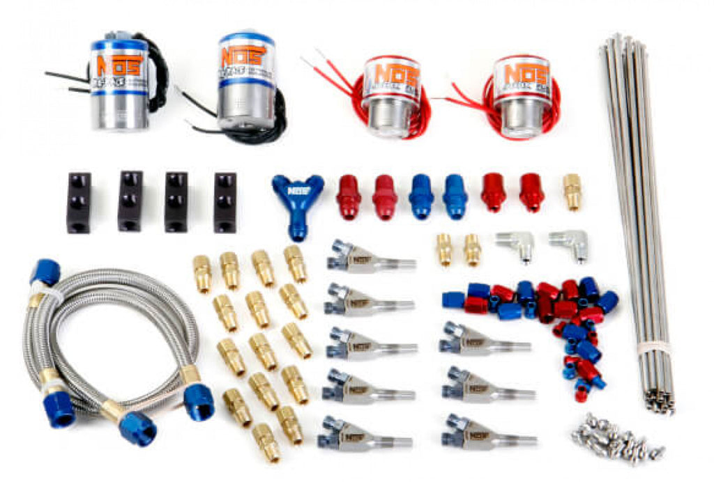 NOS Pro Fogger Custom Nitrous Plumbing Kit, Includes 13700RNOS Nozzles & 16048RNOS Solenoids – Plumbing kits are offered for those needing only the components related to the intake Manifold plumbing of a direct port Injection kit. Proper quantities of nozzles, lines, jets, and appropriate Fittings are included. Plumbing kits are also available in "show" version with polished lines, distribution blocks and chrome Solenoids (if included in part number).