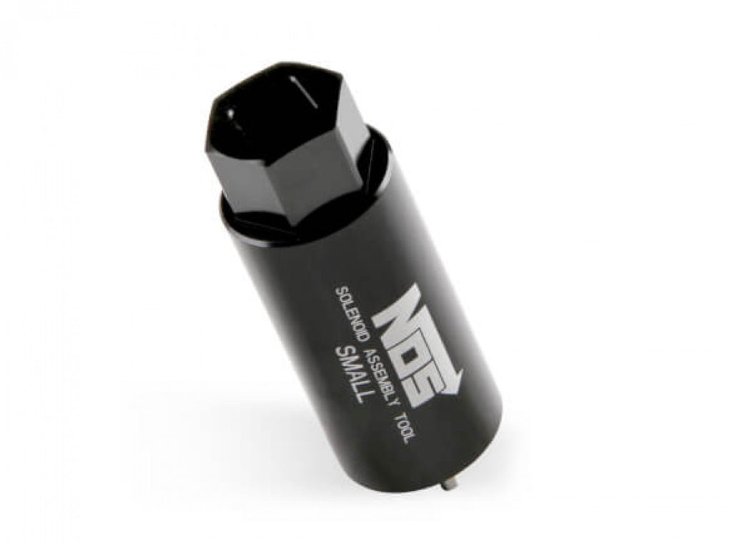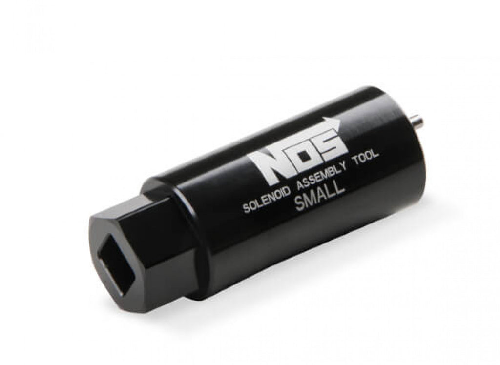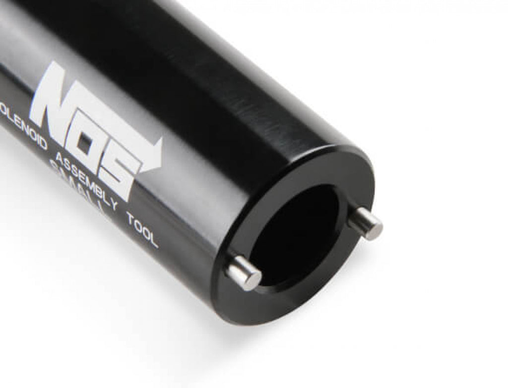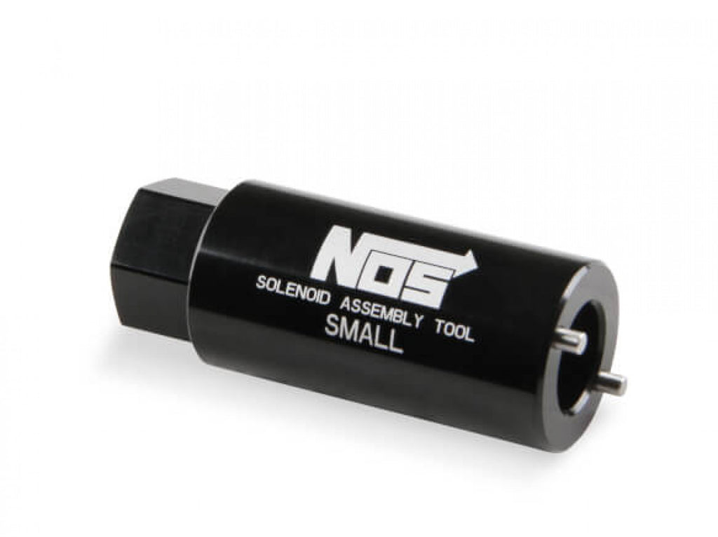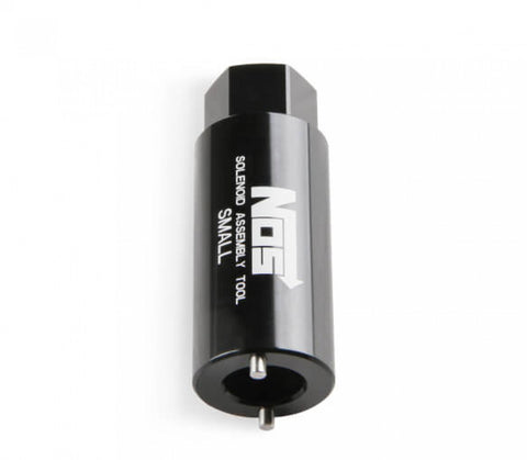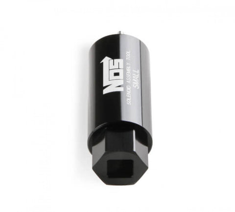 NOS These new sockets are designed to allow easy maintenance & rebuilding of NOS solenoids using a 3/8" ratchet or torque wrench. Each socket is made from billet 2024 aluminum w/ stainless steel pins that fit into the retaining nut on the solenoid. Choose from the small or large body socket, based in the solenoid you want to service. Black anodized finish. Sold individually.