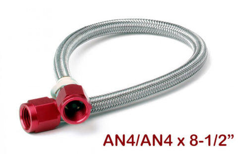 NOS NOS premium grade stainless steel braided hoses come with –3, –4, –6 and –8 AN fittings ,including step–ups, in virtually any length. They are all Teflon lined with a stainless steel outer covering for strength and resistance to abrasion. All NOS lines are configured for a superior flow to strength ratio. The AN Fittings are color coded for identification: blue for nitrous or red for fuel.