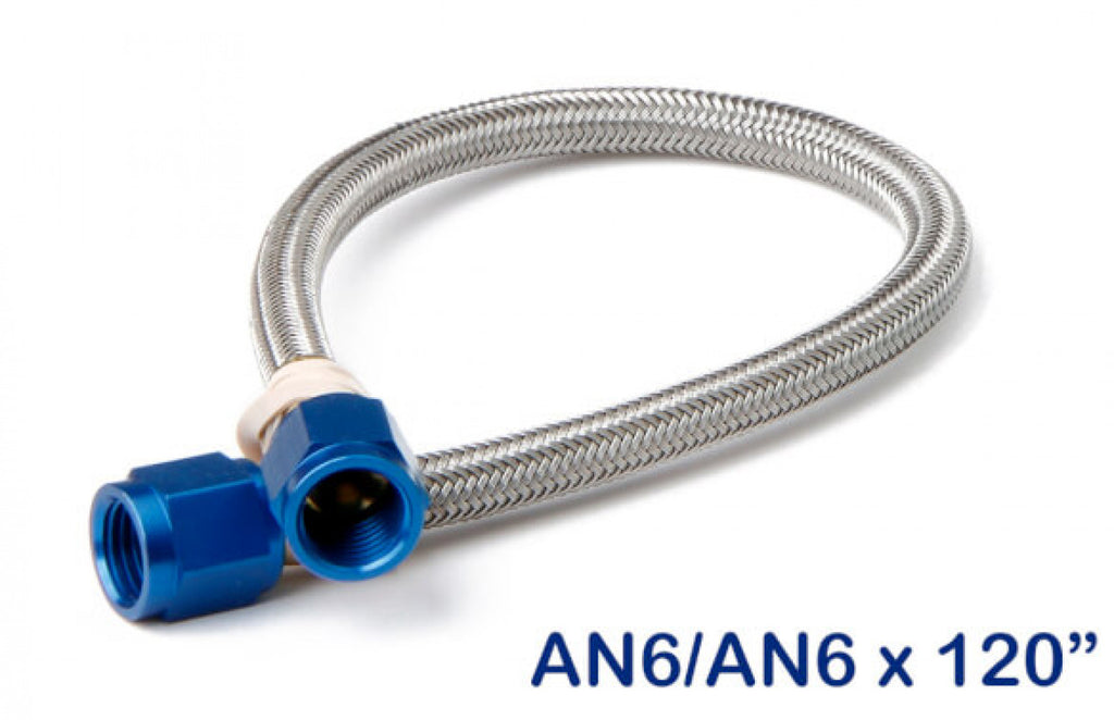 NOS NOS premium grade stainless steel braided hoses come with –3, –4, –6 and –8 AN fittings ,including step–ups, in virtually any length. They are all Teflon lined with a stainless steel outer covering for strength and resistance to abrasion. All NOS lines are configured for a superior flow to strength ratio. The AN Fittings are color coded for identification: blue for nitrous or red for fuel.