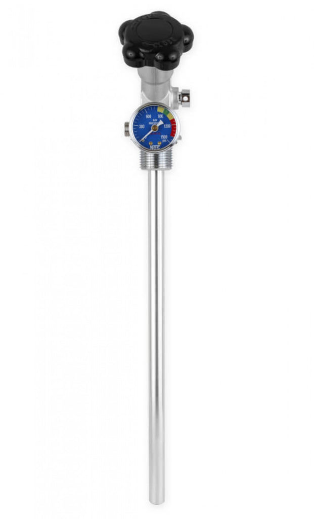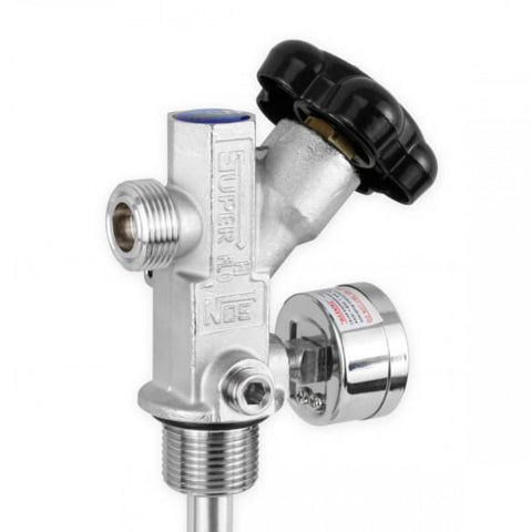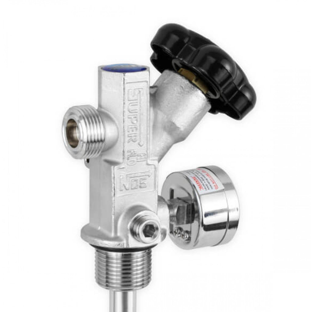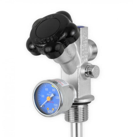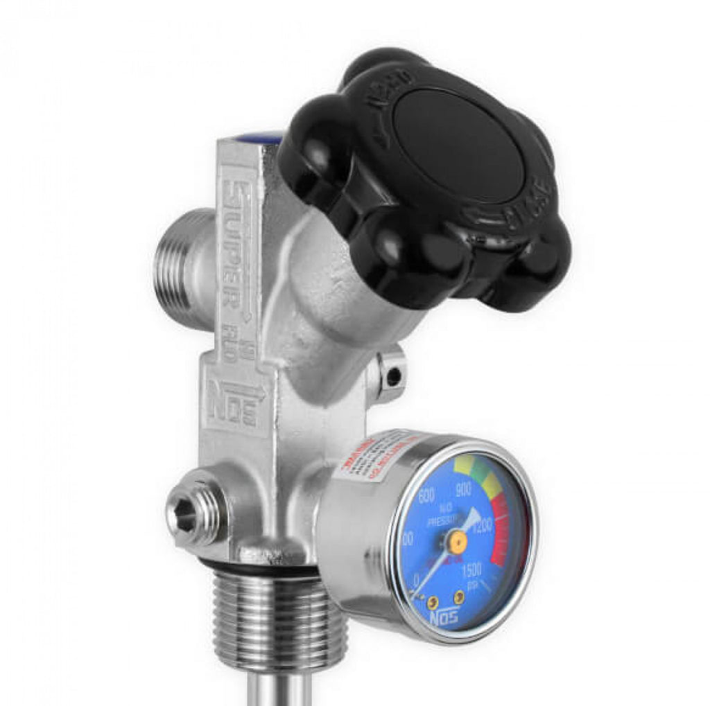 NOS NOS now offers Super Hi-Flo bottle valve assemblies with siphon tube and nitrous pressure gauge already installed. This gives you a great way to upgrade to the highest flowing valve and tube NOS has to offer. Key bottle valve features include a 1/8"NPT gauge port, 1/4"NPT accessory port, large internal and outlet ports, along with an O-ring seal. Our 3/8" id screw-on siphon tube is made from 6061 aluminum can be used as an upgrade for an older style compression fitting tube. Lastly, included with our assemblies is either blue or black face 1-1/2" nitrous gauge with easy-to-see color graduations and a white pointer. These gauges have a stainless steel case with brass internals.