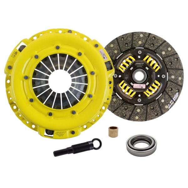 NZ1-XTSS kit features an Xtreme pressure plate for the most demanding driver. ACT Xtreme pressure plates use exclusive diaphragm design to increase clamp load, reduce deflection and maximize clutch life. All diaphragms endure a four-stage, heat-treating process for unparalleled performance. ACT pressure plates have precision cover stampings to provide rigidity and consistency. ACT's Performance street discs are the most popular disc purchased. They feature premium organic materials with high copper content for better heat transfer and steel-backed lining for greater burst strength and durability. These discs have reduced marcel for faster shift action to complement ACT pressure plates. Quiet operation with increased strength and reliability.