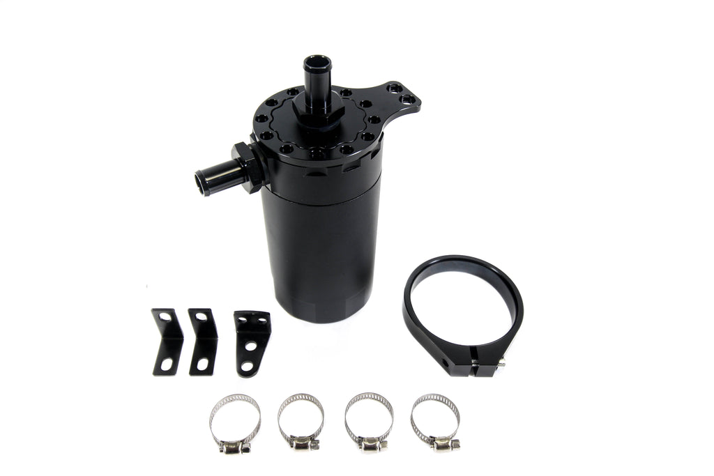 This PLM baffled oil catch can is designed to collect oil and blow by gases from PCV valve or engine valve cover going to the intake system that causes carbon and sludge build-up.