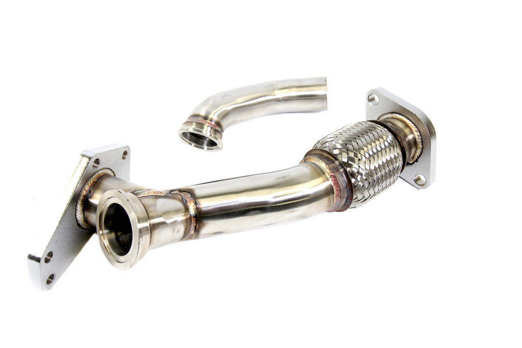 External wastegates allow for quicker spool because they do not cause turbulence in the exhaust stream and also give better boost control. Unleash the potential of your motor with our high flowing EWG Up-Pipe. 10-40hp results depending on your setup. No modifications are needed as it is a direct bolt-on unit to the OEM header or turbo.
