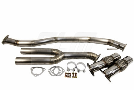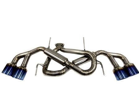 PLM Private Label Mfg Power Driven Titanium Exhaust Nissan GT-R R35 was made for maximizing HP gains. The exhaust system generates more horsepower by optimizing engine airflow and volume through carefully selected, application-specific tubing lengths and diameters and increased wave scavenging effects for more horsepower. CNC mandrel bending allows for a constant tubing diameter throughout the bend, which results in precise fitment as well as improved exhaust gas flow. Each system is fitted with a straight resonator, includes Titanium flanges, and is finished off with a straight-through, low-restriction titanium blue exhaust tips for uninterrupted flow.