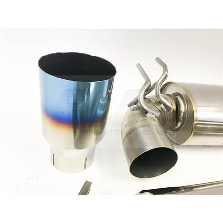 Private Label Mfg. Power Driven Titanium Exhaust V2 (EVO X) was made for maximizing HP gains without sacrificing ride height.. The exhaust system generates more horsepower by optimizing engine airflow and volume through carefully selected, application-specific tubing lengths and diameters and increased wave scavenging effects for more horsepower. CNC mandrel bending allows for a constant tubing diameter throughout the bend, which results in precise fitment as well as improved exhaust gas flow. Each system is fitted with a straight resonator, includes TI flanges, and is finished off with a straight-through, low-restriction exhaust tips for uninterrupted flow.