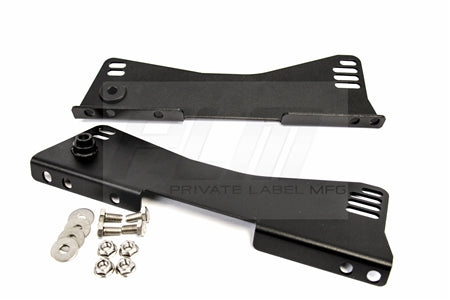 PLM side mount brackets are more versatile with pre-drilled slots for sliders from most major aftermarket seat manufacturers like Sparco, Recaro, OMP, Cobra, F1Spec, Racetech, Status, Corbeau, Bride, Momo, etc. There is also extra material for direct mounting when the driver wishes to eliminate sliders altogether.