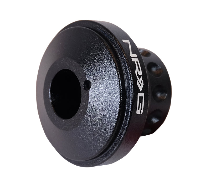 If you're looking for a stylish Quick Release Steering Wheel set up, but also have function and weight savings on your mind? Well, you have just found the shortest, easiest-to-use, racing hub adapter in the market. While they perform just as well as our normal Short Hubs, the race hub is more compact. In most cases, we have removed over an inch to the height of the hub by removing the horn attachments, along with the steering wheel mating surface, and opting for a Quick Release style attachment. This means that you MUST have an NRG Quick Release attached to your steering wheel in order to mount it on the Race Hub. (There is no 6 hole pattern on the Race Hub)