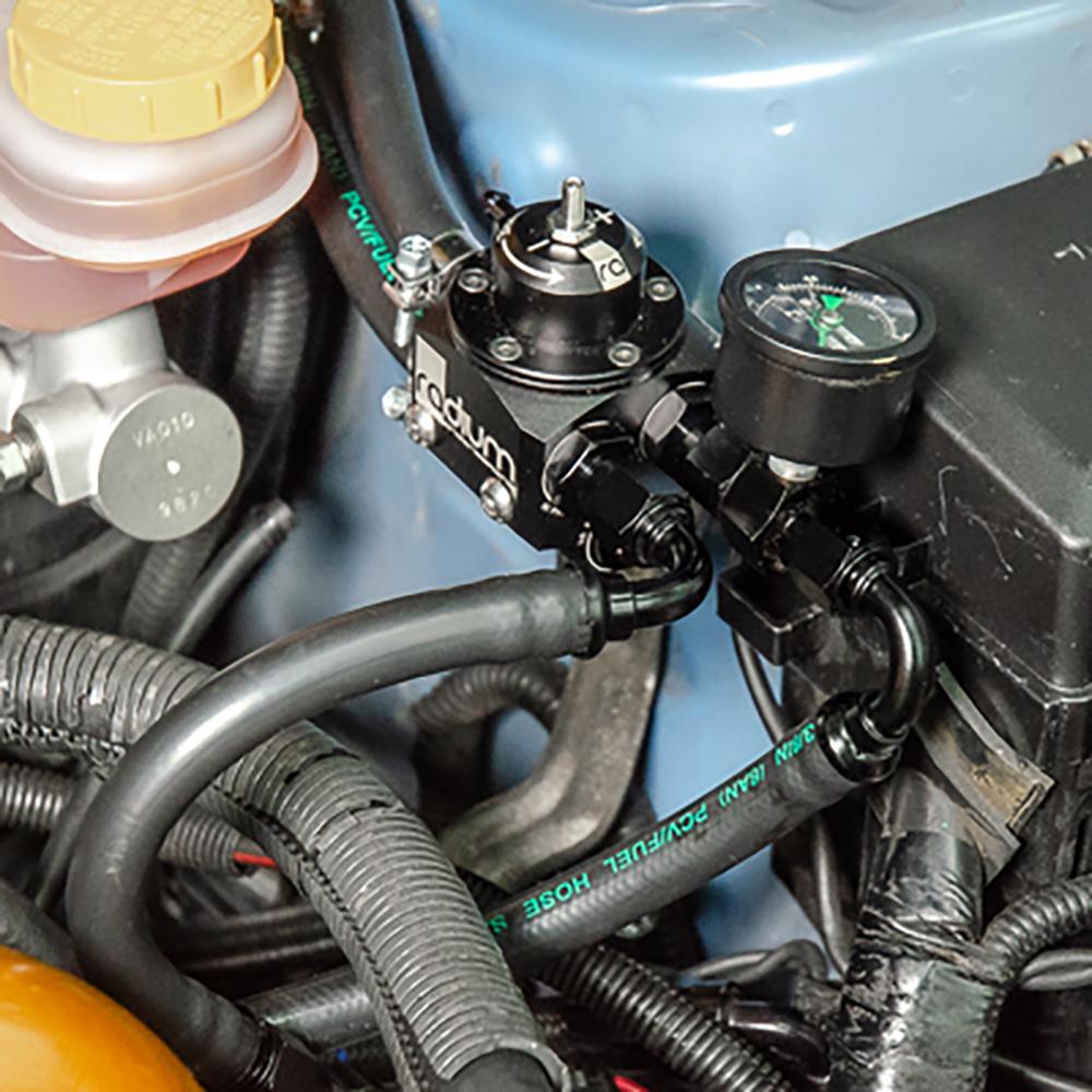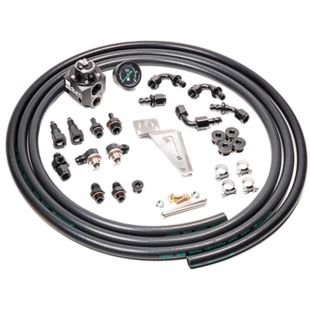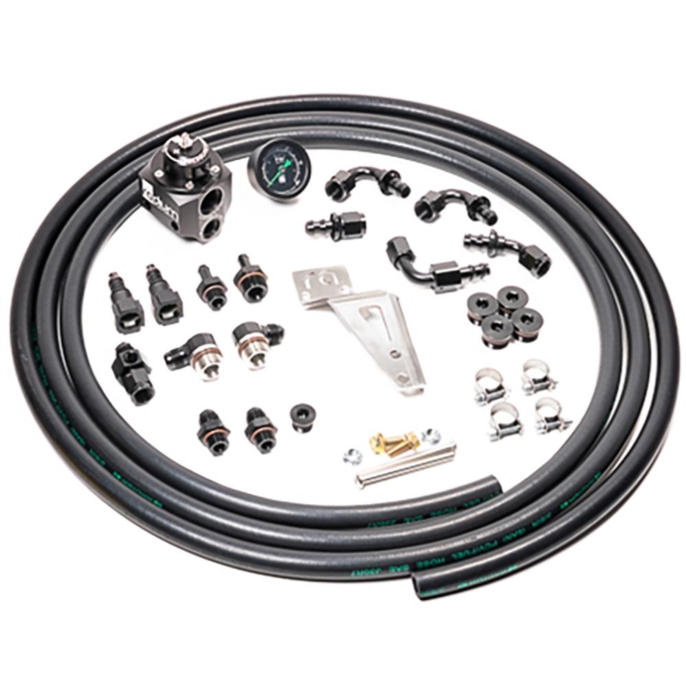 • Adjustable Radium Direct Mount Regulator (DMR) and Radium 0-100psi fuel pressure gauge are included