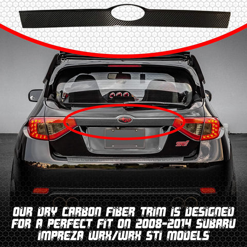 his dry carbon fiber WRX STI cover is just what you need to give your ride a cooler, more aggressive look! We know you are going to love it. Getting this trim installed will not take more than 5 min. It is an easy DIY installation that needs no tools to perform making it an easy upgrade even if you are not a mechanic. Enhance your vehicles looks with this cover cap. Install on top of OEM. Please clean installation area well and allow to dry before installation. Peel the double-side glue tape (provided) and paste over. Professional installation recommended. We added a UV-Resistant clear coating on this cover to prevent color fade. It will stand up to the harshest weather and still look like new. We give you nothing but the best. The carbon trim is strong, lightweight, and ultra-thin. Our Dry Carbon Fiber trim is designed for a perfect fit on Subaru WRX/WRX STI models. Please confirm your car model and year before purchase.