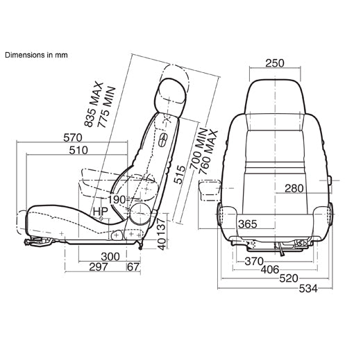 Max Seat Cushion Width: 20.5 inches / 520 mm