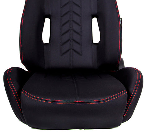 The Arrow is the perfect addition to any build, whether it's a race car, weekend warrior, or even a show car. Our reclinable bucket seats offer safety, performance, and style at an affordable price. The seat features Black Cloth, and Red stitching along the seams. Note: They are priced and sold in pairs only.