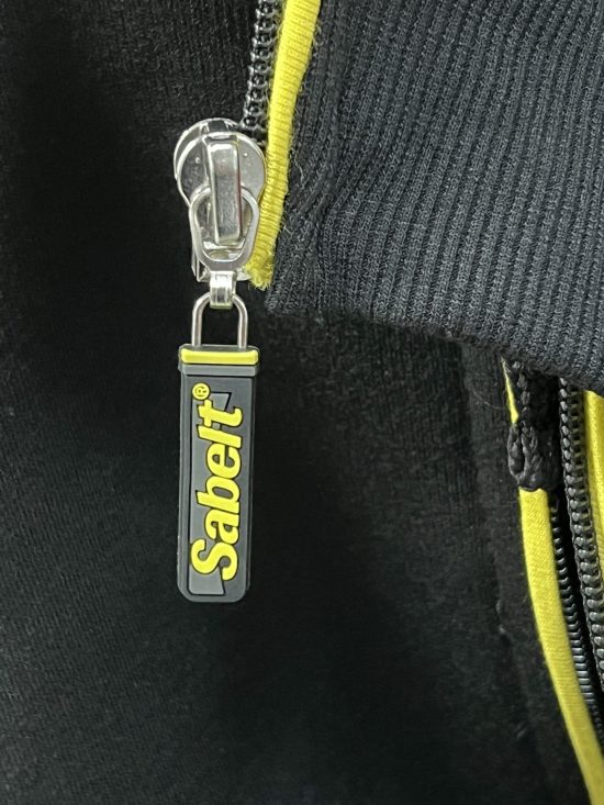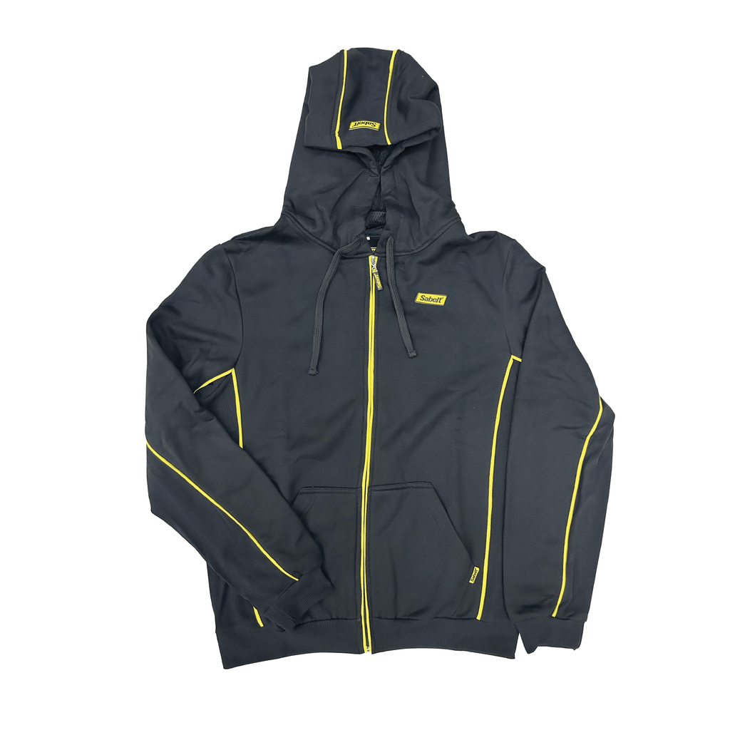 - Rubberized Sabelt Official logo on upper left chest, hood, and zipper pull