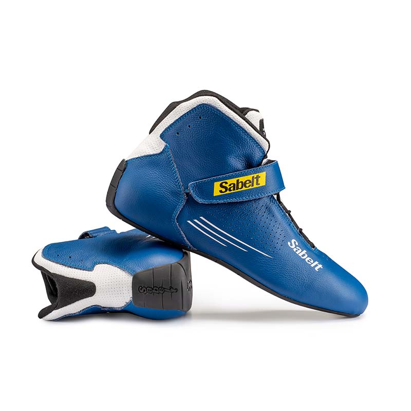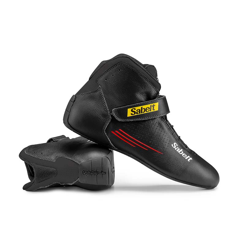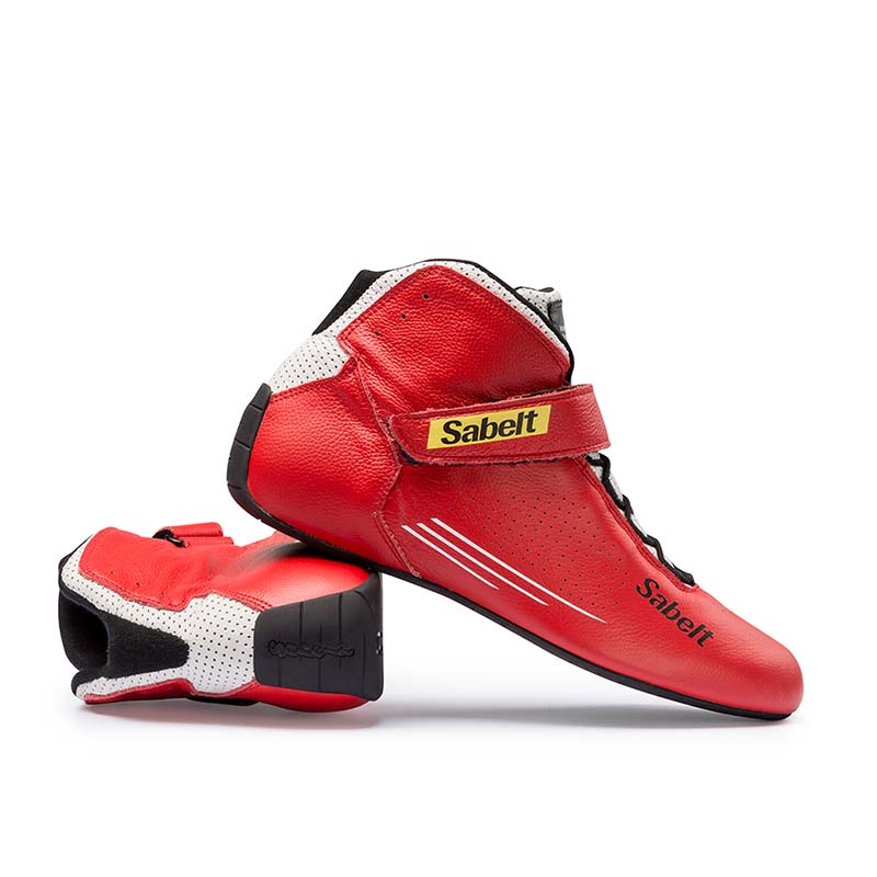 The Sabelt Hero TB-9 is a true professionals mid-cut racing shoe with an ultra-thin calf leather exterior and a Nomex fire-retardant interior. The easy velcro closure is smartly positioned low across the shoe to allow for plenty of mobility in the ankle. The back portion features a stretch panel, providing extra flexibility and comfort. The tongue and sides of the shoe are perforated for exceptional ventilation, and the toe of the shoe is reinforced for strength. The minimal three line design and Sabelt logos are screen-printed, keeping the shoe as lightweight as possible. The patented ultra-thin sole has a minimalist tread for unmatched pedal feel and feedback.