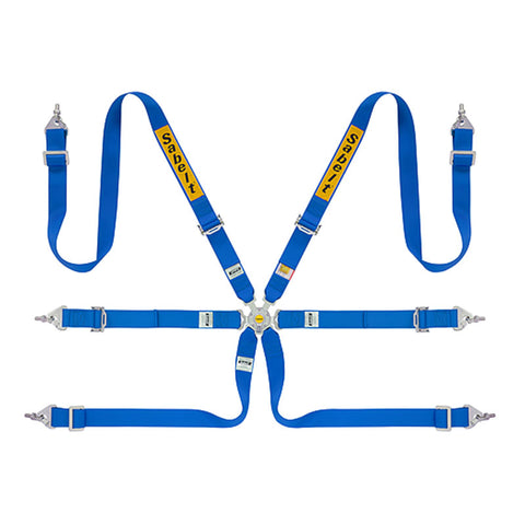 This is a lightweight 6-point saloon harness with 2” shoulder, lap, and sub straps with pull-up adjusters. These harnesses are equipped with high strength steel adjusters and a lightweight rotary quick release buckle. The shoulder, lap, and sub belts are equipped with snap hook fixings.