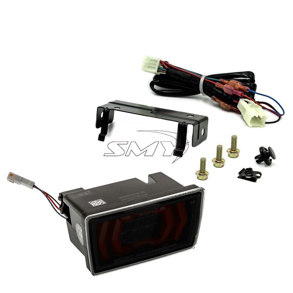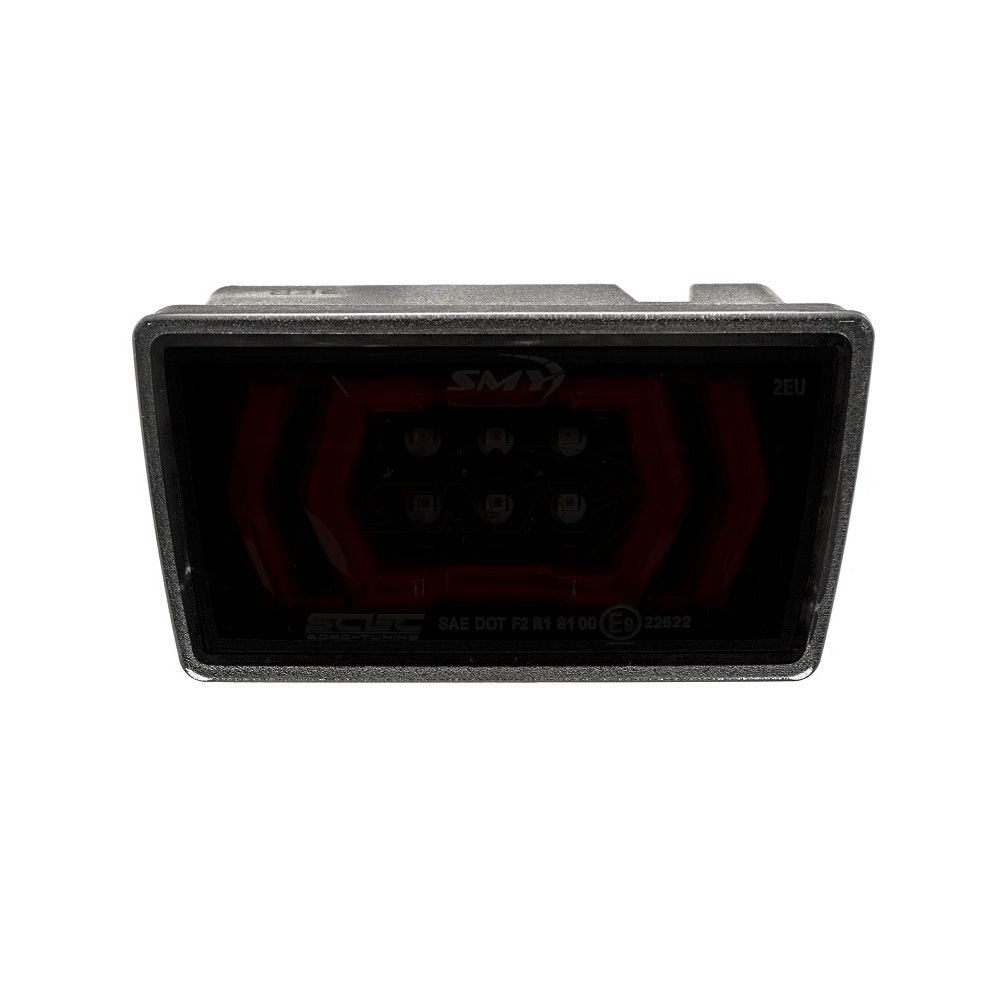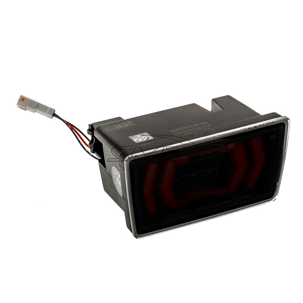 This beautiful rear brake light comes with 6 Red LEDs and a Red trapezoid light bar that is the daytime running light function. The 6 LEDs in the center are both a hyper flashing F1 style brake light or a solid brake light which can be quickly changed from the driver's seat.