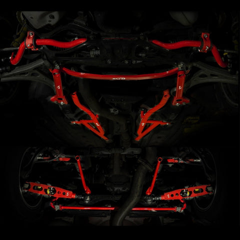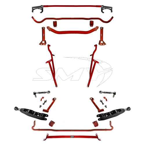 A top-of-the-line full suspension bracing kit is a high-performance product designed to provide maximum support and stability to your vehicle's suspension system. It is made of high-quality materials that are strong, durable, and resistant to wear and tear. The kit includes all necessary components that work together to reduce body roll and increase handling drastically over OEM. When you choose SMY branded products you know you are getting the best quality in the market and products over-engineered to last.