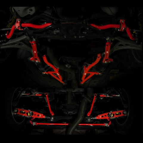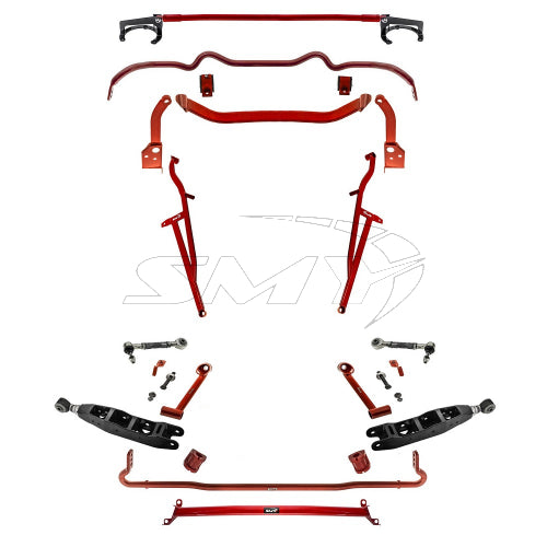 A top-of-the-line full suspension bracing kit is a high-performance product designed to provide maximum support and stability to your vehicle's suspension system. It is made of high-quality materials that are strong, durable, and resistant to wear and tear. The kit includes all necessary components that work together to reduce body roll and increase handling drastically over OEM. When you choose SMY branded products you know you are getting the best quality in the market and products over-engineered to last.