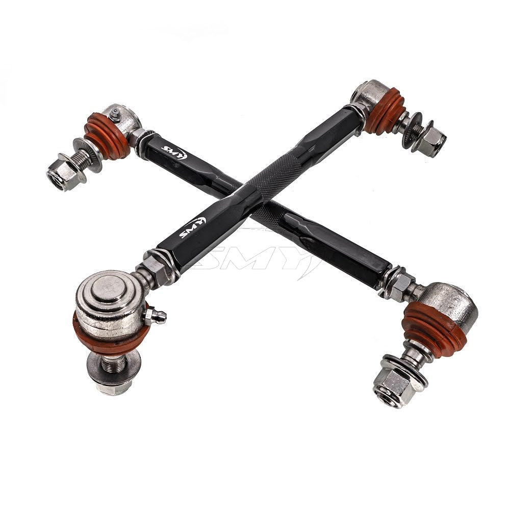 Adjustable heavy-duty end links are suspension components that connect the sway bar to the vehicle's control arm. They are designed to be stronger and more durable than standard end links, and they feature an adjustable design that allows for fine-tuning of the sway bar's stiffness. This can help improve the handling and stability of the vehicle, especially during high-performance driving. The heavy-duty construction of these end links can also help to prevent bending or breaking, even under the stress of heavy loads or off-road use.