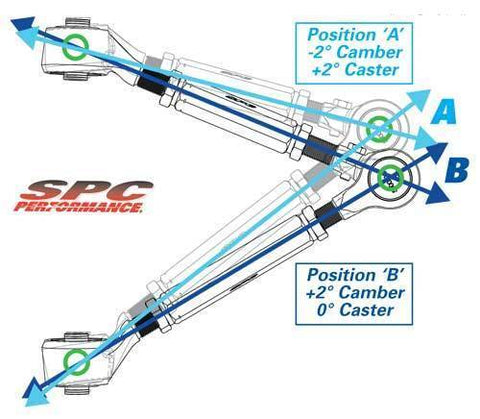 This pair of patent pending adjustable front upper control arms will give ±3° camber and ±3° caster change. SPC arms match the OE design for clearance so you can maximize camber change without fender well interference. The rubber isolated xAxis™ sealed flex joints retain OE bushing values for Noise, Vibration, and Harshness (NVH), while providing the handling qualities of a mono-ball. Optimized geometry and high strength forged steel components make this the strongest adjustable arm on the market today. Whether you want a cambered stance, improved handling, or to minimize tire wear, this is the best arm for you.