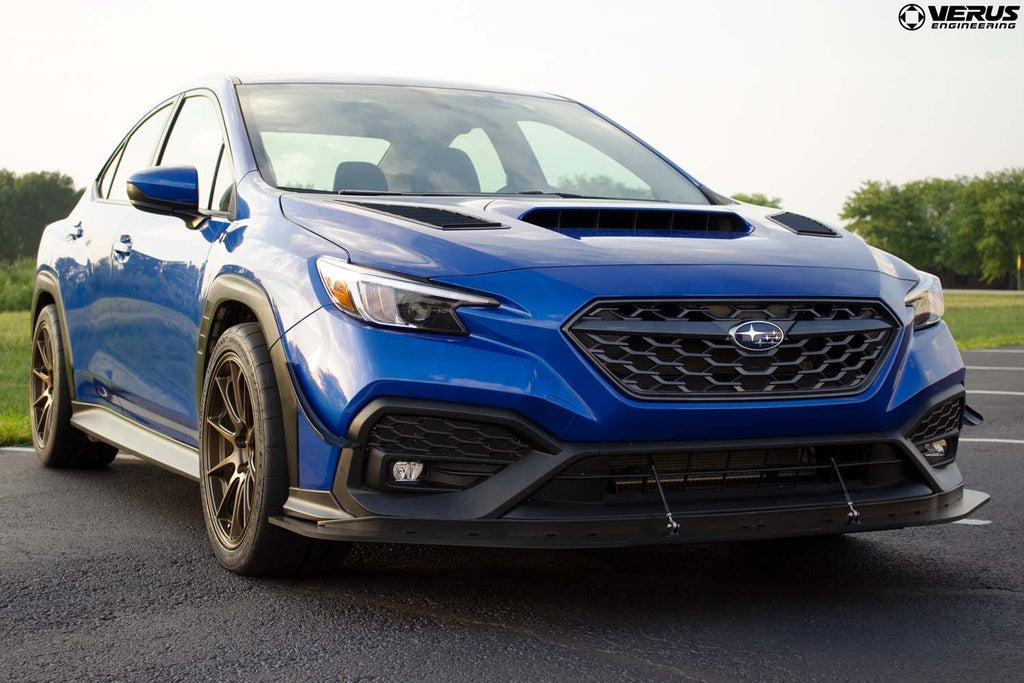The Verus Engineering Subaru WRX VB Air Dam is a simple to bolt-on addition that improves front splitter performance and makes any front splitter a more complete system. Ensuring high-pressure air cannot make its way between the front splitter and the bumper, increases the pressure differential on the splitter, improving performance. By improving the airflow around the front bumper, other items, like our dive planes, also see an improvement in performance.