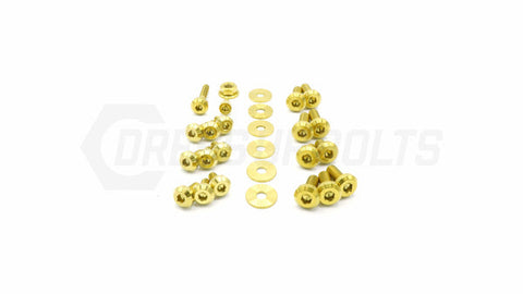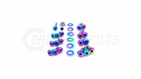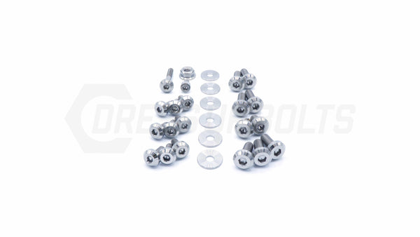 This 27 piece kit includes bolts, nuts, and washers manufactured from extremely durable, anticorrosive, and lightweight GR5 titanium metal.