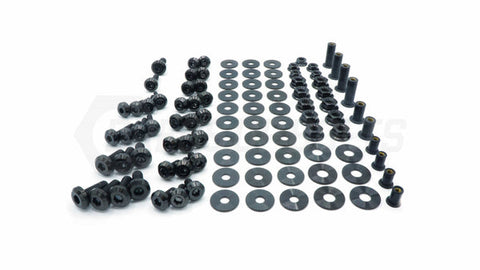 This 99 piece kit includes bolts, nuts, and washers manufactured from extremely durable, anticorrosive, and lightweight GR5 titanium metal.