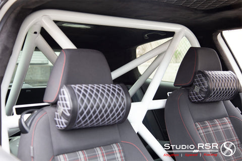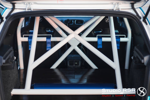 StudioRSR has developed an outstanding rollcage / rollbar (half-cage) for the Volkswagen Mk6 chassis to fulfill motorsport, HPDE, and track-day needs. Chassis rigidity and proprietary features makes the StudioRSR roll cage the premium option available in the market. Designed and manufactured in-house, StudioRSR uses the latest manufacturing technologies to create this upgrade with NASA Racing specifications and wide-radius bends. There is zero metal crimping and zero tubing wall failure that is often seen from alternative roll cages. The StudioRSR half-cage is 100% bolt-in featuring a 4-point optimum mounting design and an additional cross brace unique to the GolfR / GTI for increased rigidity as well as form-fitted brackets specific to the Volkswagen chassis. Professional installation is recommended, but installation is made easy with chromoly interlocking tubing clamps, zero welding, and all necessary hardware included. Available in-house at StudioRSR or shipped direct to you or your preferred Dealer/Installer internationally. This half-cage consists of 2 main pieces making installation and shipping even easier.