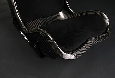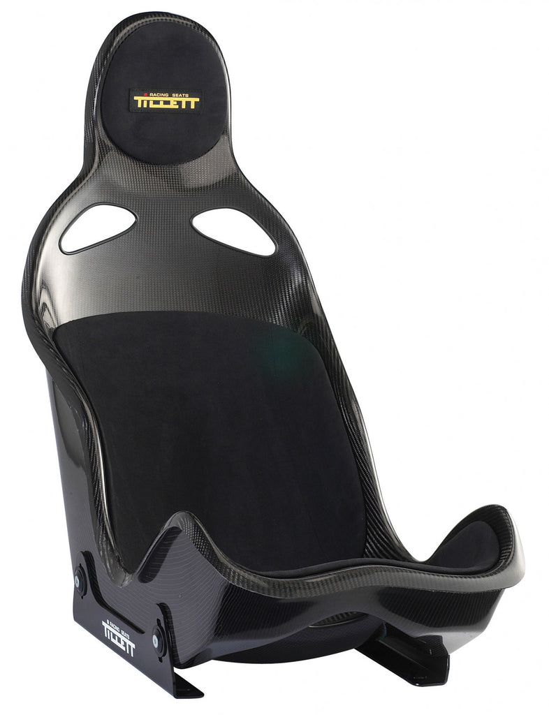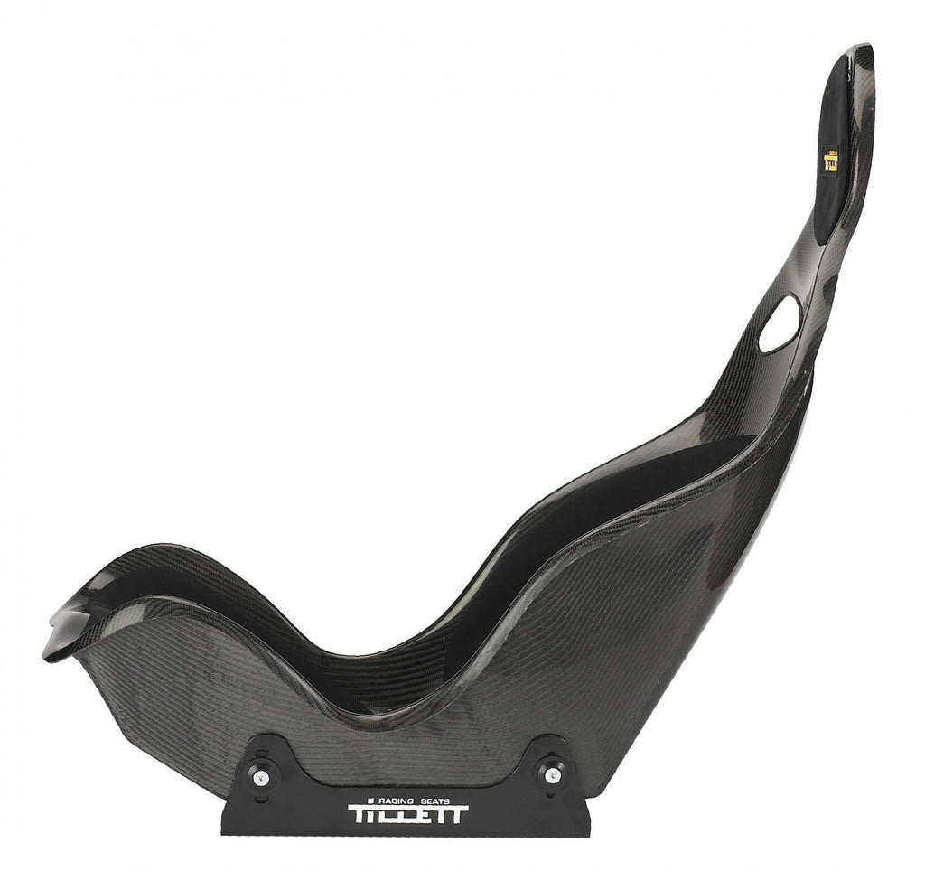 The ultra-lightweight B2 seat weighs only 3 kg and is made from glossy carbon fiber. The seat is designed for a low reclined driving position, which is suited to race or track day vehicles. Due to the compact shape, this seat fits into many vehicles that could not take a regular performance car seat. Some drivers also prefer a seating position that allows for their legs to be more bent, which the B2 design enables by slightly elevating the driver’s upper legs. The B2 can be run with a 5/6-point full racing harness. A 4 point or OEM 3-point belt is not recommended on a reclined seat. Like most Tillett seats, the shape of the B2 is comfortable enough that it does not require padding, making it ideal for open topped cars. The seat includes a Dinamica® suede covered headrest pad. Matching back and cushion pads are available as an add-on option which add about 1 kg in weight. There are three bracket options with this seat: