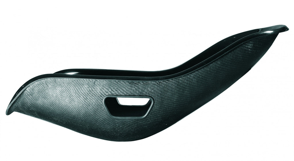 Note: two pictures in the listing show the seat without the backframe. Edges are also on in the pictures. The W3 seat is a reclined seat with a formula race car driving position. This is black GRP version with a backframe and the edges off, which weighs 3.6 kg and is 40 cm wide. Seat belt harness holes are included. A five or six point harness is advised with any reclined seat. The floor mountable backframe has four M8 bolts integrated into the moulding. With the backframe the seat is self-supporting and easy to mount rigidly to the floor or on top of the Tillett TR1 seat adjustment runners. An alternative and popular covering option is a Dinamica® suede two-piece seat pad set which is a special-order item.